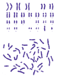 不同物種的染色體都有各自特定的形態結構(包括染色體的數目、長度、著絲點位置、臂比、隨體大小等)特征,而且這種形態特征是相對穩定的。經染色或熒光標記的染色體,通過一定的光學或電化學顯色設備就可以清晰而直觀的觀察到染色體的具體形態結構,再與正常核型進行對比尋找差異,進而確定染色體的缺失、重復和倒置等現象。