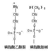 甘油的C(1)和C(2)羥基被脂肪酸酯化,C(3)羥基被磷酸酯化,磷酸又與一極性醇X—OH連接,這就構成甘油磷脂。分子的非極性尾含有兩個脂肪酸的長烴鏈,甘油C(1)連結的常是含16或18個碳原子的飽和脂肪酸,其C(2)位則常被16~20個碳原子的不飽和脂肪酸占據。磷酰—X組成甘油磷脂的極性頭,故甘油磷脂可根據極性頭醇(X—OH)的不同分類。X=H構成最簡單的甘油磷脂,叫做磷脂酸,它在生物膜中僅有少量。通常存在于生物膜中的甘油磷脂都有極性頭。重要的甘油磷脂極性頭基舉例如下。