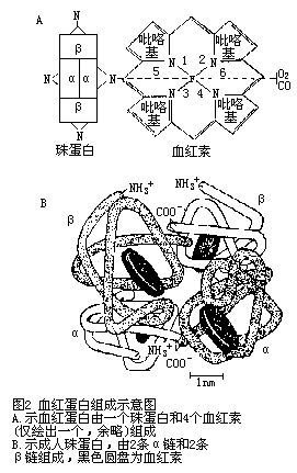 血紅蛋白主要機能一是結合和運輸氧和二氧化碳。血紅素中的Fe 1 能和氧可逆結合,鐵離子仍為2價,稱氧化作用,氧分壓高與氧結合,成為氧合血紅蛋白(HbO2 ),氧分壓低與氧解離成為脫氧血紅蛋白(Hb),從而完成氧運輸。其氨基可結合二氧化碳成為氨基甲酸血紅蛋白,它在總的二氧化碳運輸中占20%。