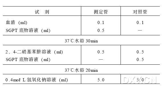 2. SGPT活力測定:取潔凈干燥試管4支,即測定管、對照管各2支,按下表添加試劑。