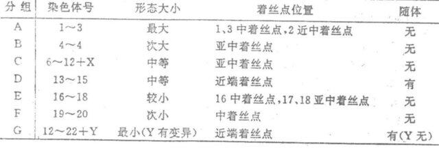 染色體分組形態(tài)特征表