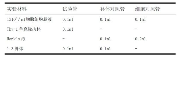 本實(shí)驗(yàn)中,Thy-1抗原是小鼠胸腺T 細(xì)胞特異的表面抗原,在體外利用抗小鼠Thy-1 的單克隆抗體通過補(bǔ)體的協(xié)同作用,可殺傷95%以上的胸腺細(xì)胞。