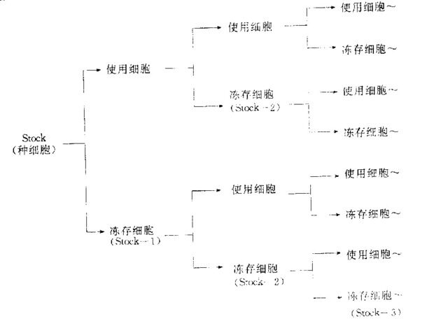 如何能保留有大量可利用的二倍體細胞?首先在初代二倍體細胞培養時,要接種多量細胞;生長成功后立即凍存做為種細胞( Stock)。用于實驗時,解凍1 分Stock,傳1~3 代,按下式處理: