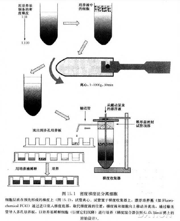 制備密度梯度液,通過密度梯度液離心細胞,收集各梯度組分,用培養(yǎng)基稀釋,培養(yǎng)細胞。