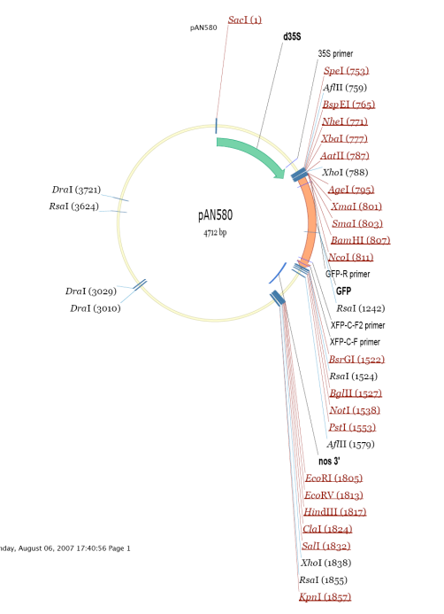 本實驗所用的載體為帶有 GFP 標簽的 PAN580 載體,其載體圖如下圖所示: