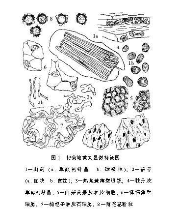 1. 觀察“杞菊地黃丸” 的顯微鑒定特征。見圖1。