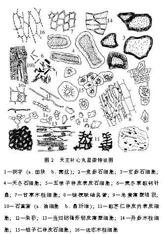 2. 觀察“天王補心丸” 的顯微鑒定特征。見圖2。