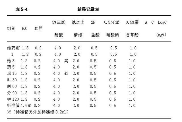 將血樣離心:將 3 ml 血液放入離心機中,3000 r/min,離心 20 分鐘,取出血漿備用。 按下表加藥:
