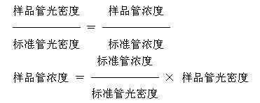 以 B0 為空白,測定 B 管的光密度。新配的試荊空白光密度在 0.01 左右。依下式計算: