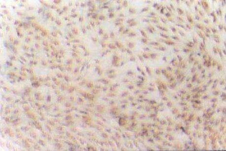 培養的視神經少突膠質細胞的免疫組織化學染色 GC 蛋白陽性,未加一抗的呈陰性。染色結果顯示成熟的少突膠質細胞突起豐富,互相形成蜘蛛網狀(圖 3)。蘇木素復染,異質細胞較少,90%以上為陽性細胞(圖 4)。