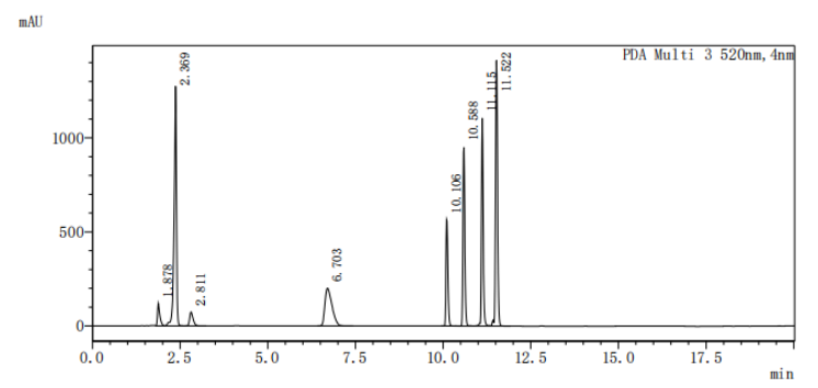 在此介紹用液相色譜法檢測喹啉黃不同異構體成分的含量: