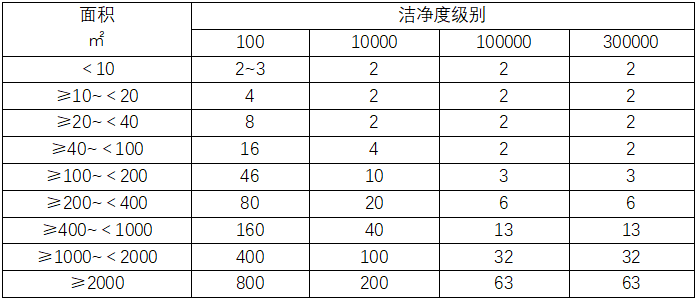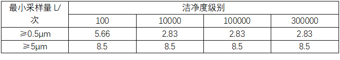 我們在進行懸浮粒子檢測時一般依據《醫藥工業潔凈室(區)懸浮粒子的測試方法》 GB/T 16292-2010為標準。我們可使用光散射粒子計數器或激光塵埃粒子來進行檢測。在進行儀器的設置時,需要保證每次的最小采樣量達到要求。最小采樣量見表一。