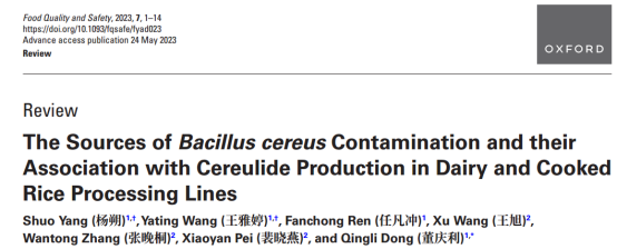 參考來源:Shuo Yang , Yating Wang , Fanchong Ren , Xu Wang , Wantong Zhang , Xiaoyan Pei , Qingli Dong , The Sources of Bacillus cereus Contamination and their Association with Cereulide Production in Dairy and Cooked Rice Processing Lines, Food Quality and Safety, Volume 7, 2023, fyad023