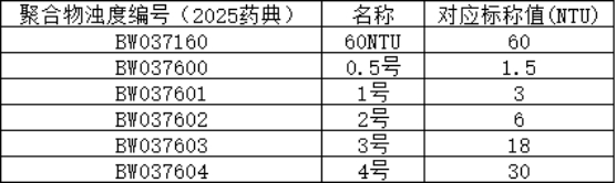 2025 版《中國藥典》第四部 0902 澄清度檢查法的更新要求,推出聚合物濁度標準液,為藥品澄清度檢測提供精準、可靠的標準物質(zhì)支持。