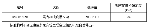 本標準溶液的標準值通過高精度濁度計與國家一級標準物質(zhì)福爾馬肼濁度GBW12001比對法定值。通過使用滿足計量學(xué)特性要求的制備、測量方法和計量器具,確保標準物質(zhì)量值的溯源性。